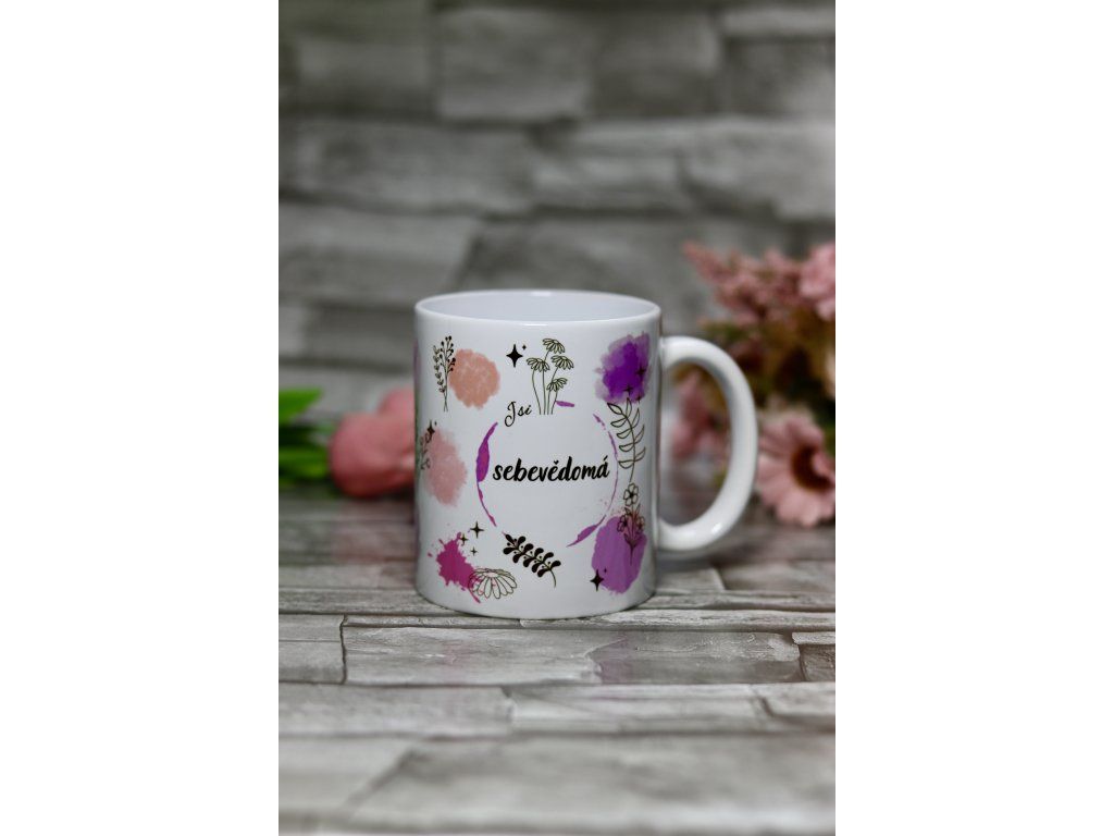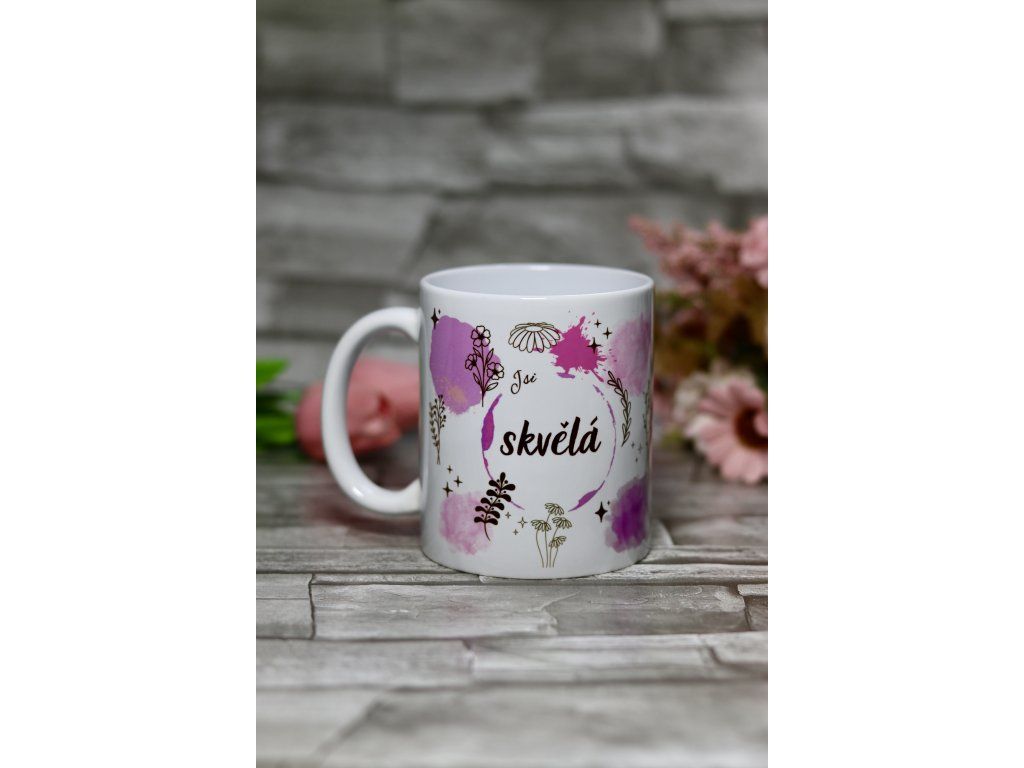 Bílý porcelánový hrnek s potiskem. Určen k ručnímu mytí.